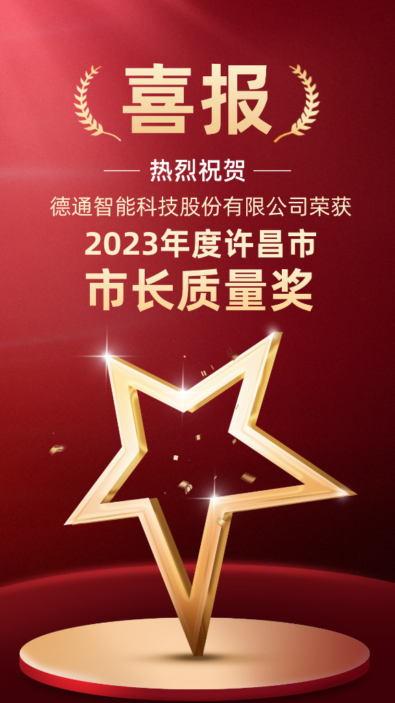 德通智能科技股份有限公司榮獲“2023年度許昌市市長質(zhì)量獎(jiǎng)”!